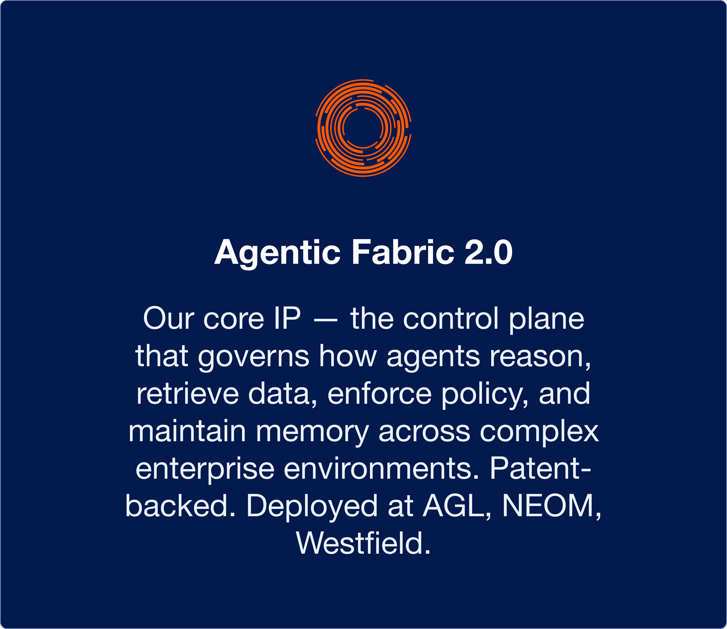 Agentic Fabric. Human API. Voice Models. A complete private AI infrastructure built for enterprise.